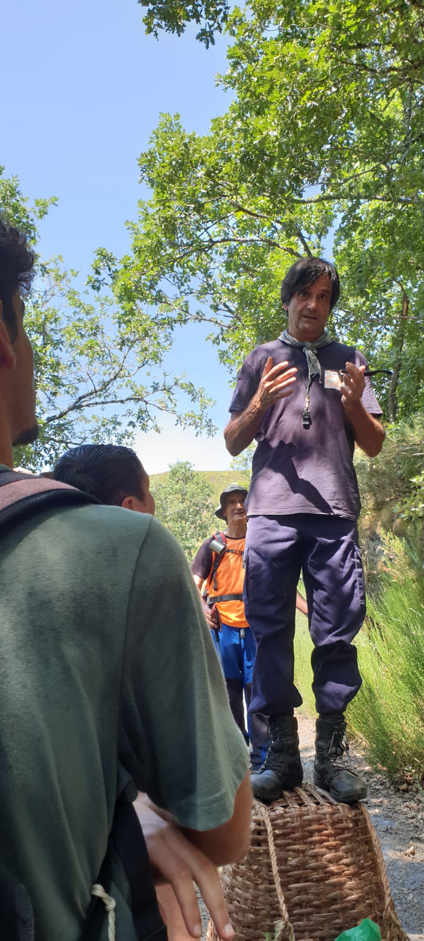 Y , como no, Abel nos deleitó con su cuévano artesanal, hecho con gran maestría por él con materiales naturales , y capaz de soportar pesos....alguna pasajera fue "aerotransportada"...